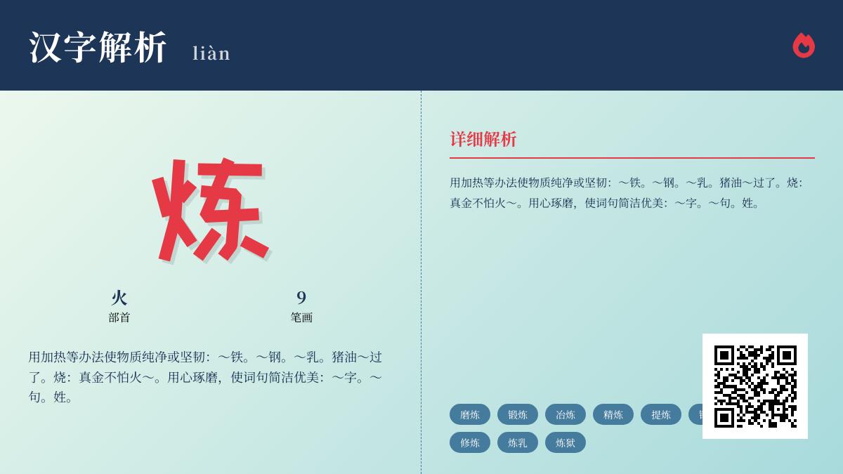 liàn —— 这个简单的音节背后,蕴藏着火与热的淬炼,智慧与汗水的结晶。每当读起这个字,仿佛能听见铁匠铺中叮当作响的锤打声,看见文人墨客灯下推敲字句的专注神情。