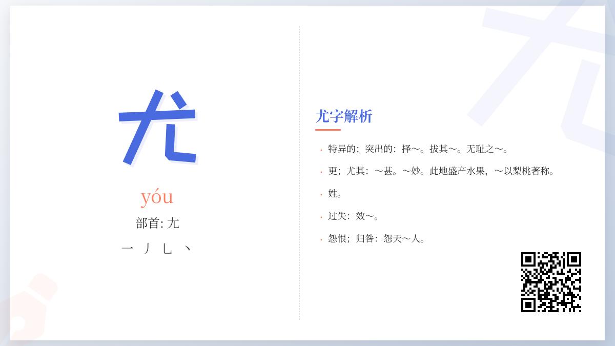 又如:尤诟(过失和羞辱);尤违(过失;过错);尤累(过失)