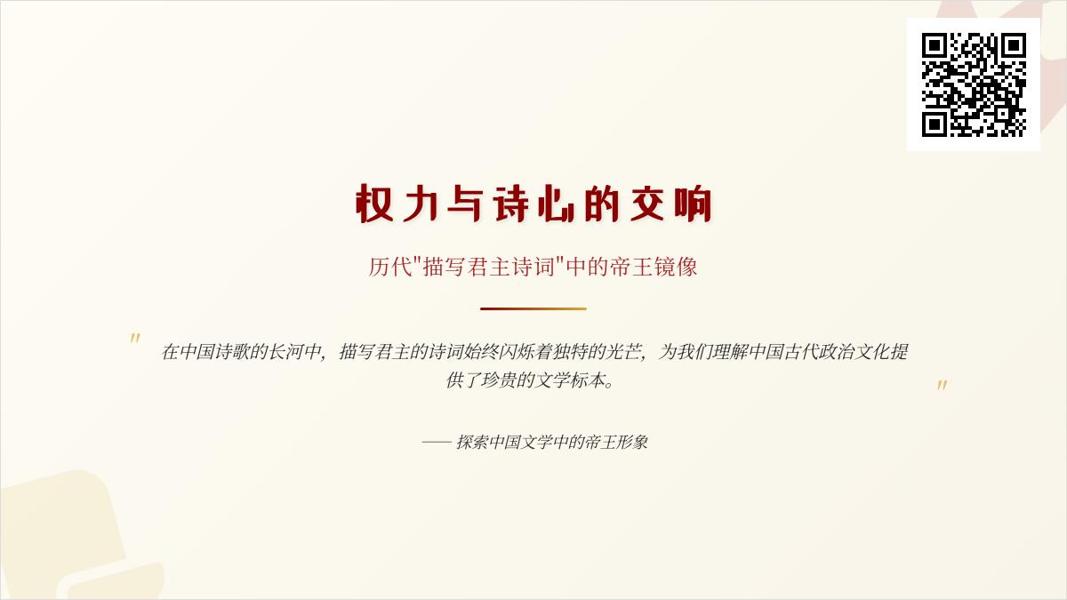 在中国诗歌的长河中,有一类特殊的作品始终闪烁着独特的光芒——描写君主的诗词。这些作品或出自臣子之手,饱含忠君爱国之情;或源于帝王自身,流露治国平天下之志;亦或是后世文人的咏史怀古之作,借古讽今,寄托理想。它们共同构成了中国文学中一道独特的风景线,为我们理解中国古代政治文化提供了珍贵的文学标本。