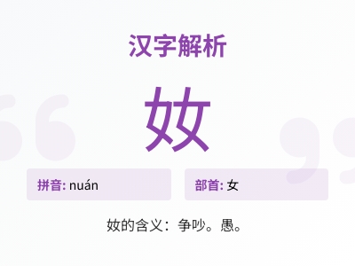 本文介绍了汉字“奻”的拼音、部首、笔顺以及含义。该字在汉语中常用来表示争吵的意义,同时也带有愚蠢的含义。文章详细解析了“奻”的字义,为读者提供了关于该字的全面信息。