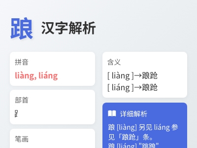 本文介绍了踉的拼音、部首、笔顺及其含义和详细解析。踉的拼音有liàng和liáng两种发音,含义包括踉跄和跳踉等。此外,文章还提到了踉的其他意义和用法,如“跳踉”(纵跃、窜跳)等。